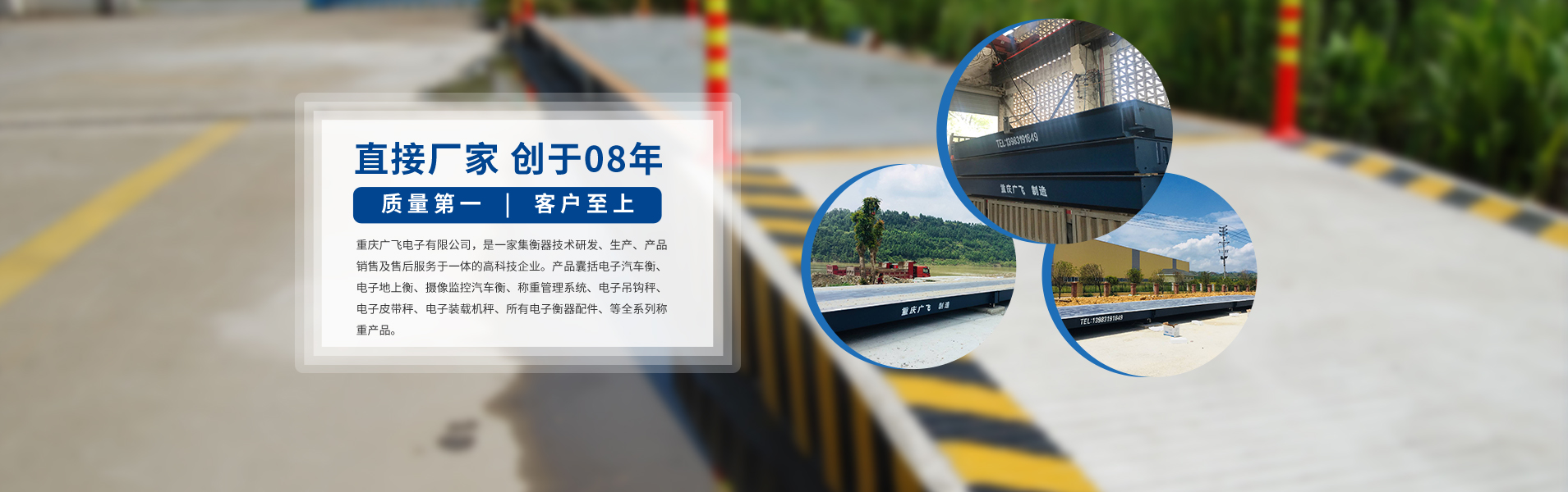 重慶廣飛電子有限公司,是一家集衡器生產、技術研發、產品銷售及售后服務于一體的高科技企業。 產品囊括電子汽車衡(電子地磅)、無人值守地磅稱重管理系統、電子地上衡、智能稱重管理系統、電子軌道衡、電子吊秤、電子臺秤、電子皮帶秤、鏟車秤、公路超載超限系統等全系列稱重產品。